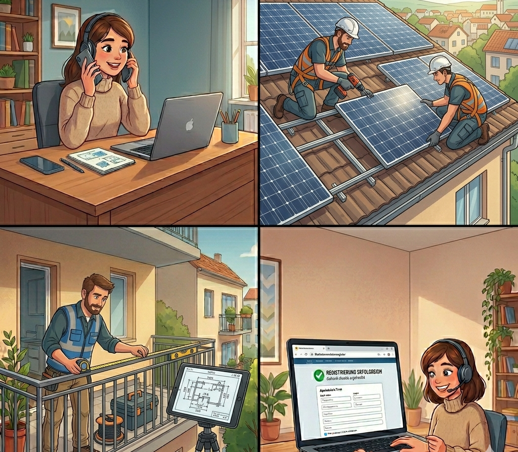Wir schauen uns Ihren Balkon, Ihre Ausrichtung und Ihren Stromverbrauch an und empfehlen die passende Anlage für Ihre Situation.